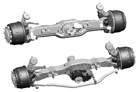 轉向驅動前橋 推薦使用車輛范疇GVWR 26T-44T 參數(shù)及尺寸 軸荷 7.5T-9T 制動器 410*160 總寬A 2385-2463 輪距B 1980-2090 板簧中心距C 850-875 最大轉角D 42/34.75 被動輪直徑 237 速比 4.266/4.769/5.262/5.92/6.733